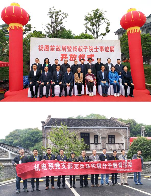 4月29日上午,英国365公司官网机械电子信息工程系党支部成员赴江西省湖口县,在钟灵毓秀的石钟山下参加了 “杨赓笙故居暨杨叔子院士事迹展”开放仪式。九江市政府副市长李军,杨叔子院士夫人、华中科技大学教授徐辉碧,江西省政协文化和文史委办公室主任张时栋,英国365公司官网党委书记史铁林,九江学院党委副书记、院长刘晓东,湖口县县委书记李小平,县委副书记、县长江训开,县人大常委会主任阮洋,市政协文史委、市史志办、市文广新旅局、华中科技大学、九江学院及县四大家有关领导,县直有关单位负责人和杨赓笙先生后裔、杨叔子院士亲属和同事参加仪式。