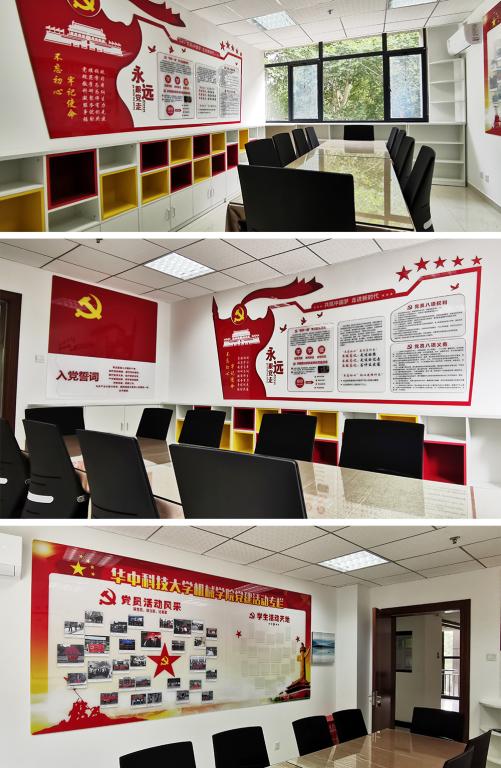 2019年8月,学院数字制造装备与技术国家重点实验室(以下简称国重实验室)党支部与学工组共同完成了党建活动室B302的建设并投入使用,前后历时三个多月。该活动室面向全院党建与学生工作,师生可在物业登记预约使用。