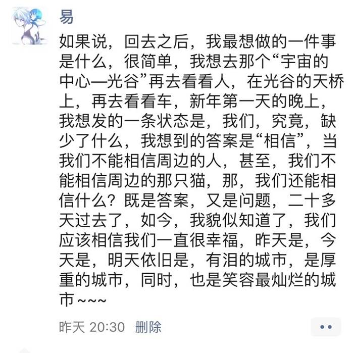 硕士1809党支部谈佳威:我想这个阶段大家每天都心有不安。疫情感染现在国内基本遏制住病毒疯狂扩张的势头,而在日本、韩国等周边国家蔓延,但夜晚总会过去,黎明终将到来,情势一定会好起来的。让我们互相扶持,共渡难关。我希望每个人都能带着微笑见面!