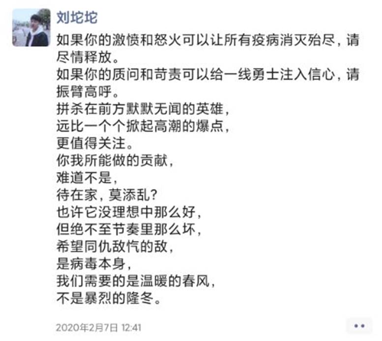 疫情防控期间,许许多多的研究生党员通过发自内心的文字、图片、音频等形式向一线战“疫”人员和困难群众送去温暖、传递信心,用年轻有力的声音为武汉加油、为中国加油!