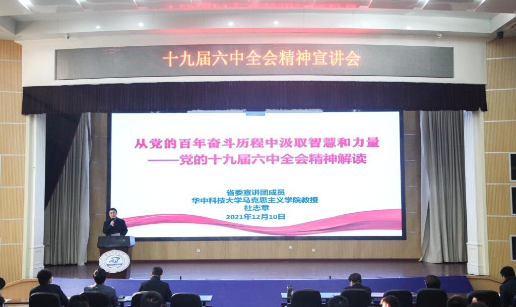 为深入学习贯彻党的十九届六中全会精神,12月10日下午,机械学院、航空航天学院联合举办十九届六中全会精神宣讲会,邀请省委宣讲团成员、马克思主义学院教授杜志章做题为“从党的百年奋斗历程中汲取智慧和力量——党的十九届六中全会精神解读”的报告。会议由机械学院党委书记高亮主持,机械学院班子参加会议。