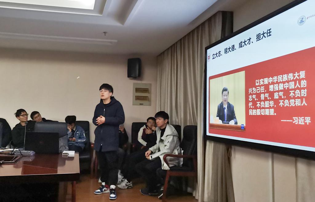 12月12日晚,机硕2002党支部、机硕2102党支部联合开展了主题党日活动。顾思远向同学们介绍了习近平总书记七年上山下乡的知青岁月以及习总书记近年来与青年的互动情况,立足习近平新时代中国特色社会主义思想,围绕习近平总书记关于青年的重要论述进行阐述;总结梳理了习近平同志对在学习中增长知识、锤炼品格,在工作中增长才干、练就本领,以真才实学为服务人民的期冀。聚焦当下,顾思远呼吁同学们积极响应习总书记的号召,以实现中华民族伟大复兴为己任,增强做中国人的志气、骨气、底气,不负时代,不负韶华,不负党和人民的殷切期望。以己为光,照亮四方,带领青年同志们撸起袖子加油干。