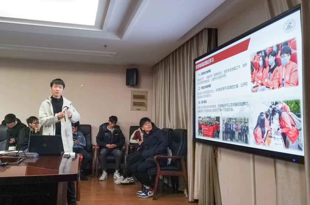 机硕2102党支部书记肖宇进行了“头雁领航”13班的成果分享,向与会成员分享了他们参与的医院核酸检测志愿活动、“喻见”渴望读书的大眼睛困难帮扶活动、参观考察毛泽东故居是实践调研活动以及实务培训及相关的理论学习活动。肖宇希望通过本次分享,让“头雁领航”活动能够影响更多的党员同志,起到“头雁领航、群雁齐飞”的效果。
