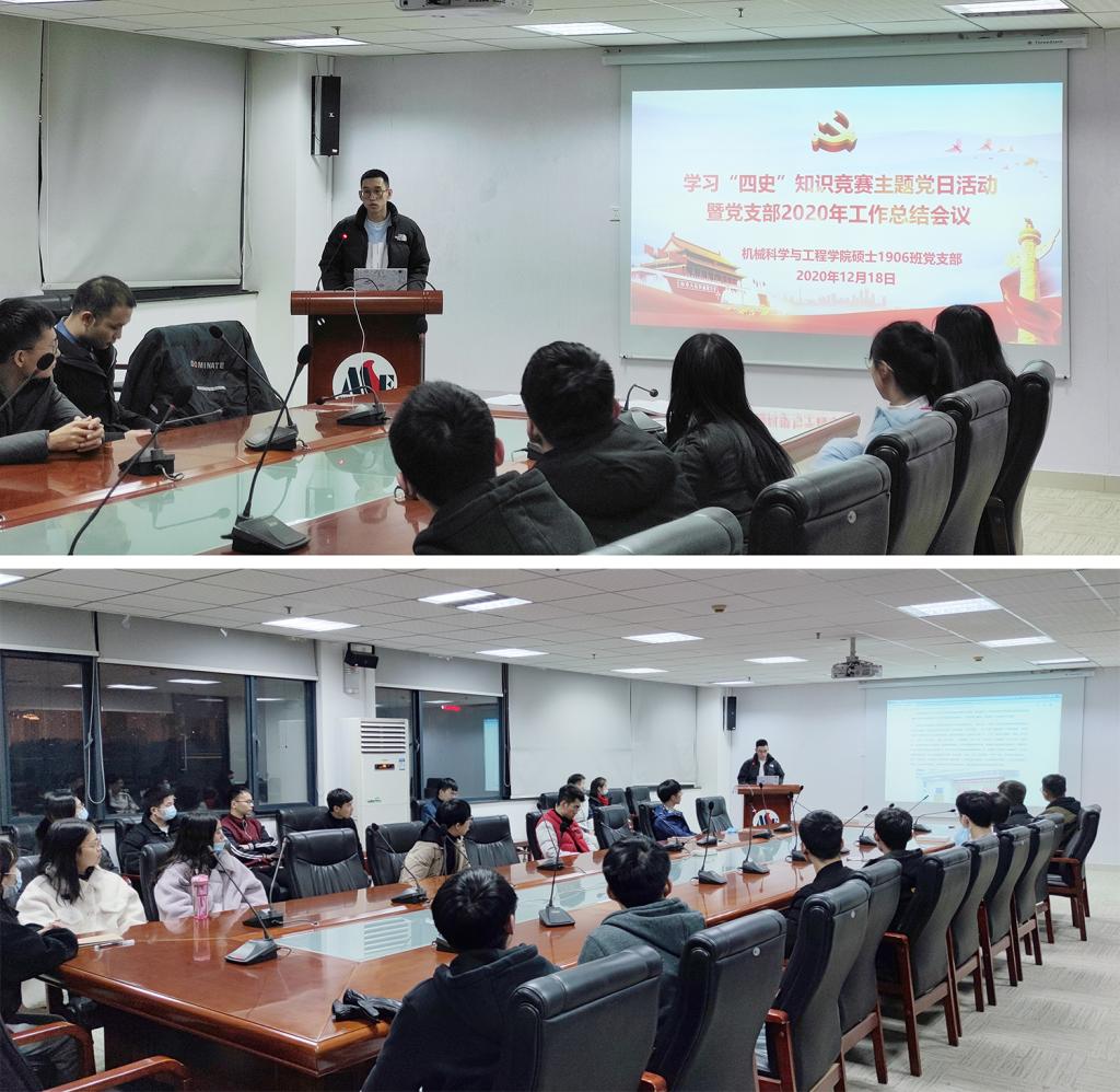 为深入学习贯彻习近平新时代中国特色社会主义思想与习近平总书记关于学“四史”重要讲话和指示,持续深化爱国主义教育,巩固深化“不忘初心、牢记使命”主题教育,英国365公司官网机硕1906党支部于12月11、18日开展“四史”主题知识竞赛、集体观影系列主题党日活动。