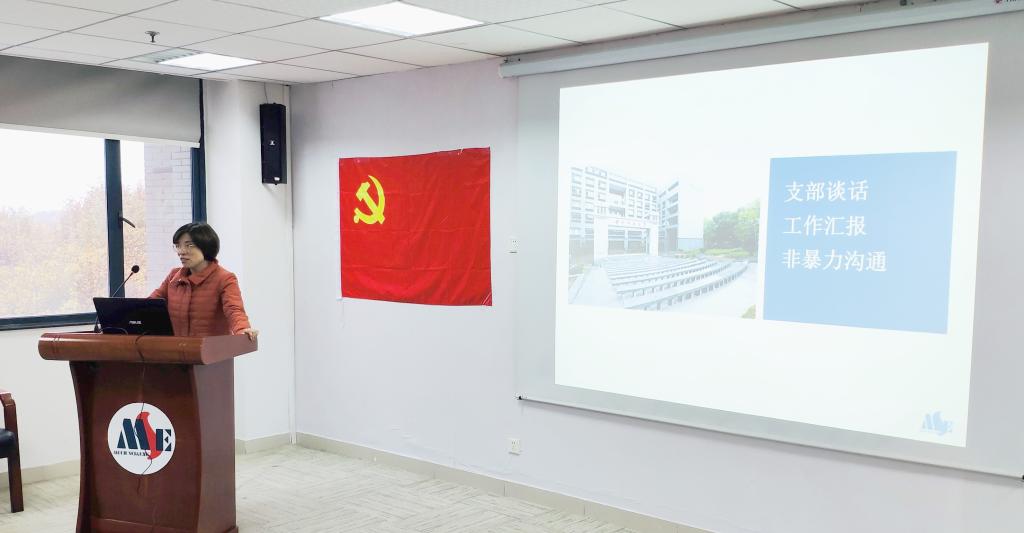 11月26日下午,英国365公司官网副院长张芬以“从支部谈话详解非暴力沟通”为主题,为机硕1902党支部全体党员、发展对象和部分积极分子讲授党课。