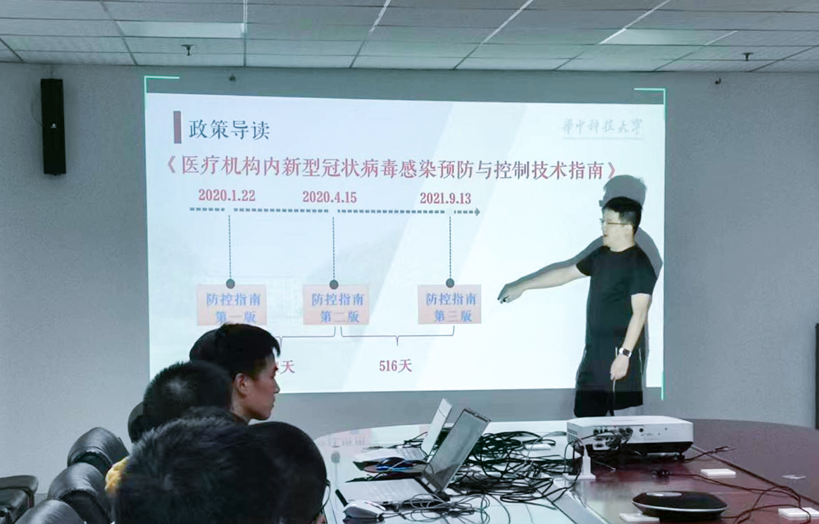 在疫情政策探讨环节,英国365公司官网CAD流控联合博士党支部书记姜宁带领大家一起学习国家战疫政策。在分享过程中,姜宁同志从各版新型冠状病毒肺炎防控方案修订时间轴总结出目前的防疫政策做到了“快、准、狠”,逐渐向常态化过渡。同时也为同学们解释了“动态清零”、“静态管理”和“疫情后处理”这些关键词的正确含义。随后分享了华中大师生在疫情期间的事迹和生活状态,疫情来袭时,华中大迅速反应,建团队、投科研、筹资金;疫情平复后又以最快的速度助力复工复产复学。最后大家一同观看华中大宣传视频,我们也非常欢迎兄弟院校的同志们疫情过后来华中大参观交流。