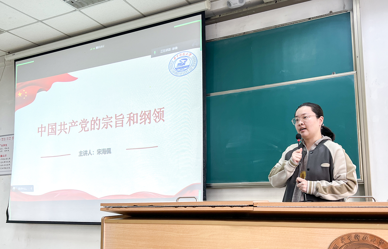 第三讲课程由人文学院辅导员宋海佩为同学们讲解中国共产党的宗旨、纲领及历史教训。课程结合视频、互动,提升了同学们的积极性。她号召大家“不忘初心、牢记使命,在学思践悟中增强党的宗旨意识,锻炼党性修养。