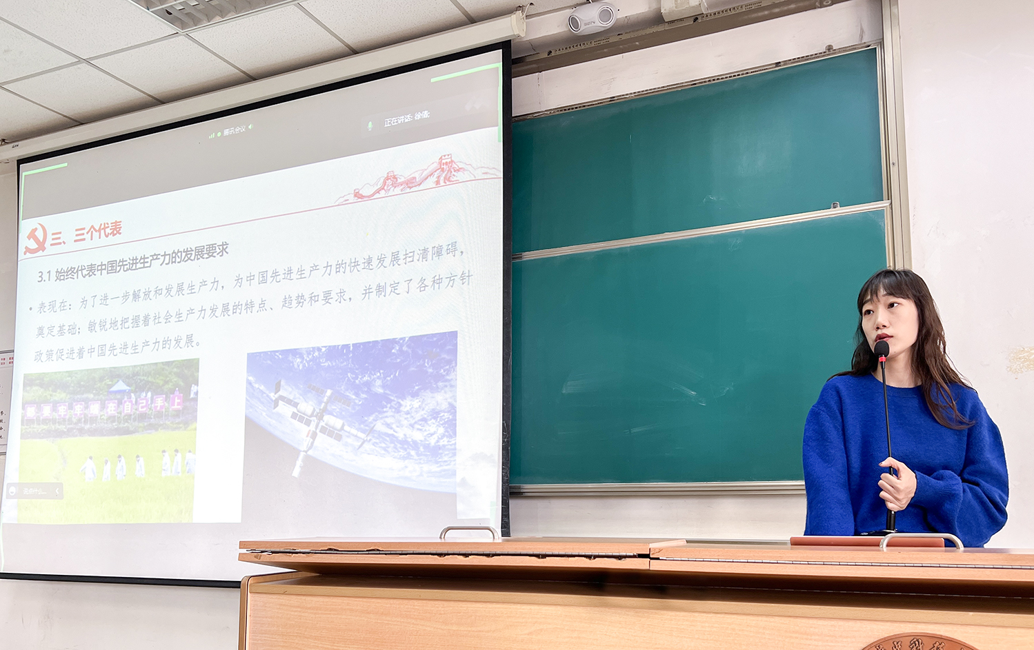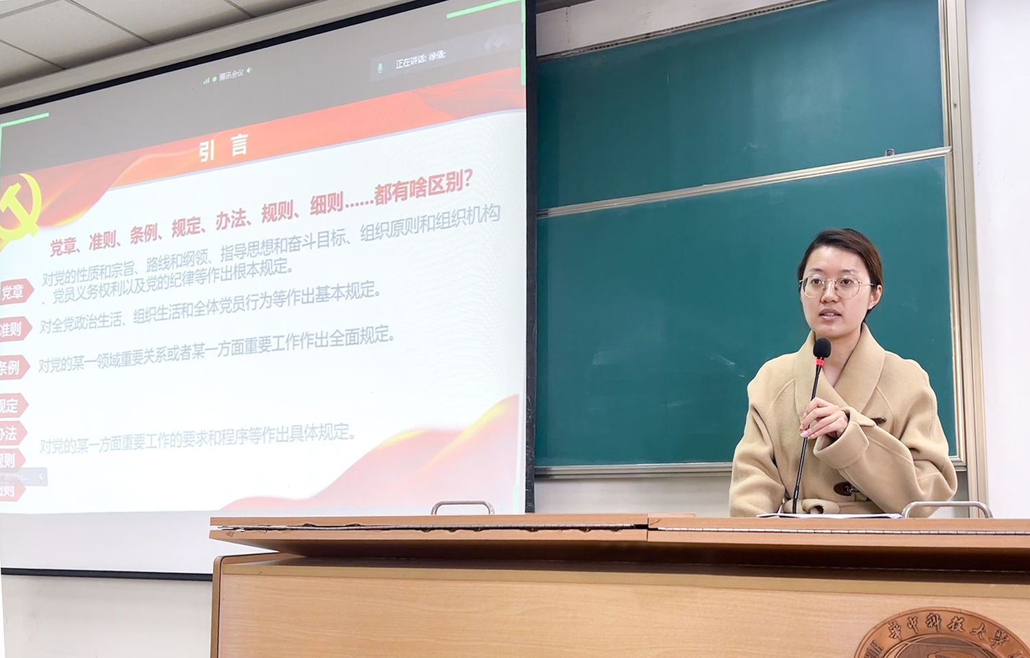 我校党委教师工作部范雯宇就习近平总书记关于党章的重要论述开展第一讲课程。她从30个知识点切入,带领同学们学习了二十大通过的《中国共产党章程(修正案)》,从“为什么要修改党章”“党章修改的重大意义”“党的建设的六项基本要求”入手,帮助同学们更好的理解党章。