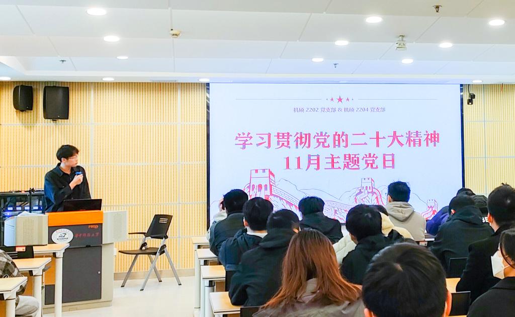 11月22日下午,机硕2202、2204党支部于机械大楼东楼A304教室共同开展以“悟党史精神,做有为青年”为主题得学习贯彻党的二十大精神主题党日活动,活动由机硕2202党支部的于磊同志主持。