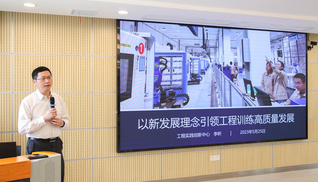 李昕以“以发展理念引领工程训练高质量发展”为题做了报告。他表示,培养卓越工程师首先要加强工程训练。工程训练中心及工程训练课程历来在高校人才培养模式重大变革中发挥了独特作用。工程训练以智能制造启智润心,以中国制造培根铸魂。他强调,既不能用昨天的知识培养明天的建设者和接班人,也不能用一成不变的教学方案教育全校不同专业的学生。其对工程实训教育体系完善的讲授和独到的深入思考让在场教职工受益匪浅。