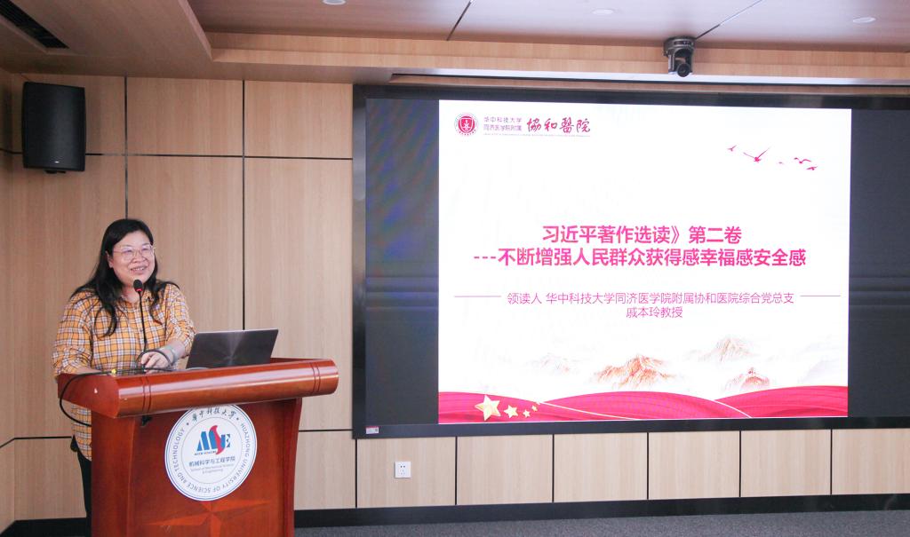 协和医院综合党总支部书记戚本玲以“不断增强人民群众获得幸福感安全感”为题讲授党课。她领学了习近平总书记在深圳经济特区建立四十周年庆祝大会上的讲话、主持中共十九届中央政治局第二十七次集体学习时的讲话与在广西壮族自治区考察工作时的讲话,并带领大家一起观看了协和医院的宣传片。