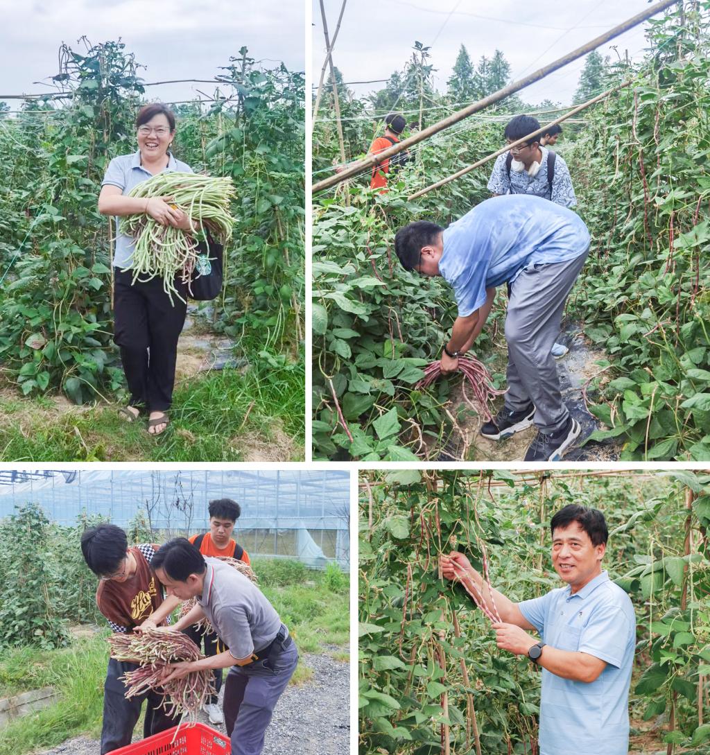 大家仔细聆听讲解,观察作物形态,还直接参与茄子与豇豆的采收,详细了解采收特点,把田间变会场,把汗水抛洒在田间。
