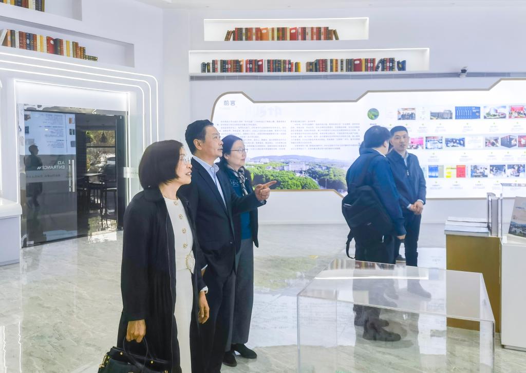 张芬一行前往参观了校出版社编辑部、图书展厅,傅蓉介绍校出版社在文化传播、意识形态领域的工作。