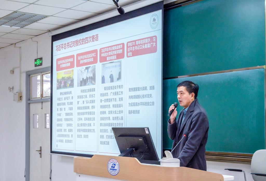 张绍浩以《听党话,跟党走,努力成为堪当民族复兴重任的时代新人》为主题,围绕党史、新中国史和国内外局势,并结合学院发展、人才培养、科技创新、就业创业等与同学们息息相关的话题深入讲解,鼓励同学们提升专业技能,培养综合能力。他向同学们推荐《苦难辉煌》这本书籍,希望大家深入学习,感受领悟,踔厉奋发,青春有为。
