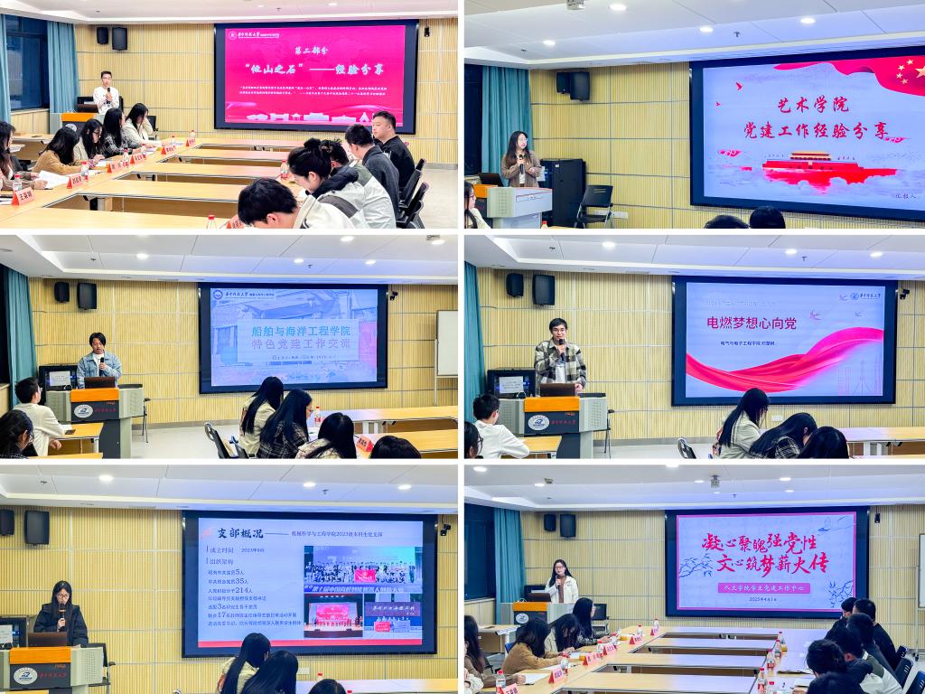 在“他山之石”环节,与会院系结合学科特色和党建工作亮点依次进行经验分享。人文学院黄舒婷分享了通过组建古籍整理小组与古籍讲解队实现专业特色育人的党建工作经验;艺术学院郭懿娇分享了通过构建“艺术实践-社会实践-志愿服务”三位一体的实践育人矩阵,培育了多项特色品牌与文艺精品成果;船海学院杨弃分享了通过优化支部设置、党校建设以及设置目标责任制度的实践经验,更好地发挥榜样示范引领作用;电气学院邓楚枫从党员先锋示范、入党严格把关和志愿服务三个方面展开讲述学院党建工作成效,并对未来继续深化党建结合专业,创新党建形式进行展望;机械学院李映雪分享了所在2023级本科生党支部将支部建在年级上的经验做法和科创特色,从持续推进“新时代党旗领航工程”的角度展望支部建设规划。