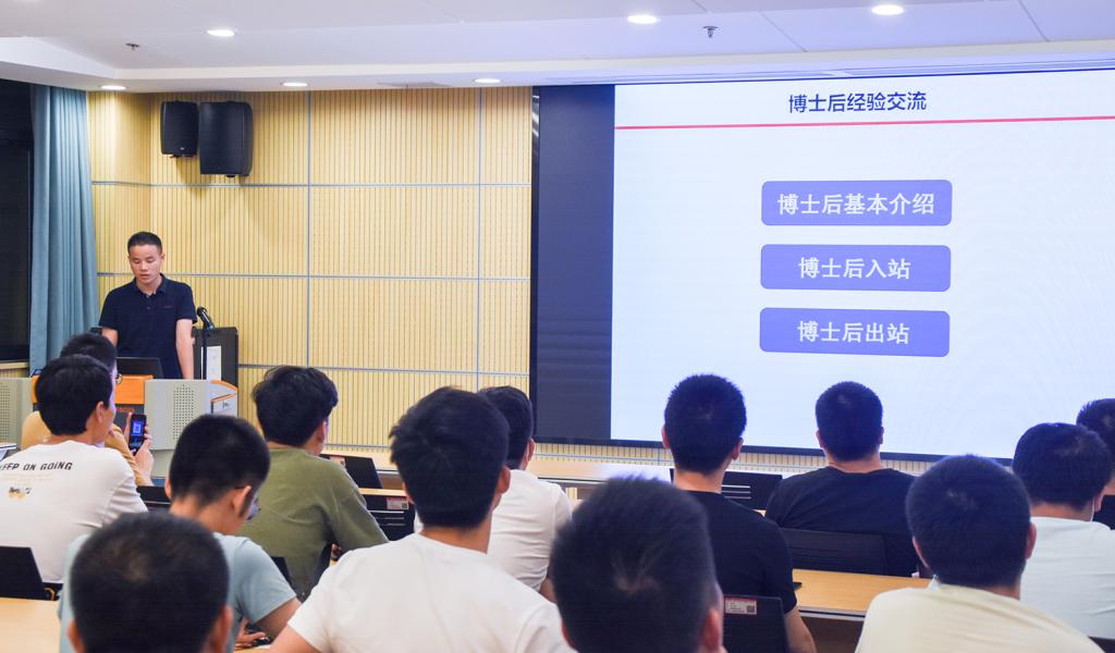 吴九林博士介绍了博士后申请经验。他表示博士后有不同类型,各单位的考核要求也不同,并建议驻站期间要重视科研规划,基金申请要尽早准备,科研工作与博士期间尽量保持较强相关性。