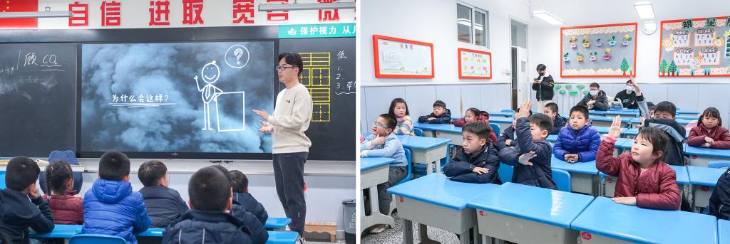 课上,团员们与同学们互动频频。当被问道地球生态环境为什么会遭受破坏时,同学们纷纷踊跃举手回答问题。