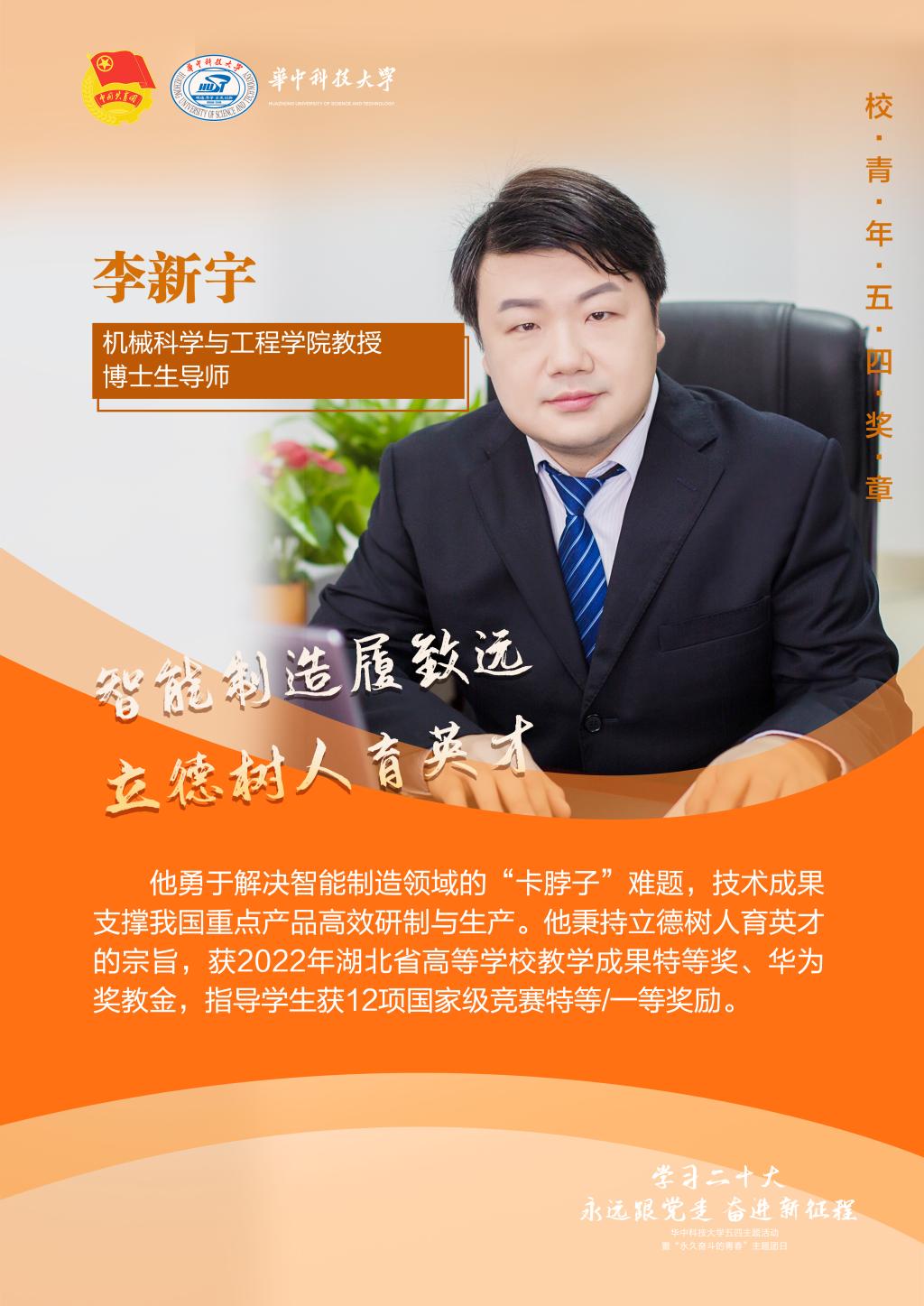 李新宇,智能工厂领域国家重点研发计划青年科学家项目、国基金联合重点等项目主持人,入选2020年国家级高层次青年人才,获得华为奖教金、2022年湖北省高等学校教学成果特等奖、“全国优秀博士论文”提名奖、2022年校“十佳青年教工”、2021年校“三育人”积极分子等。