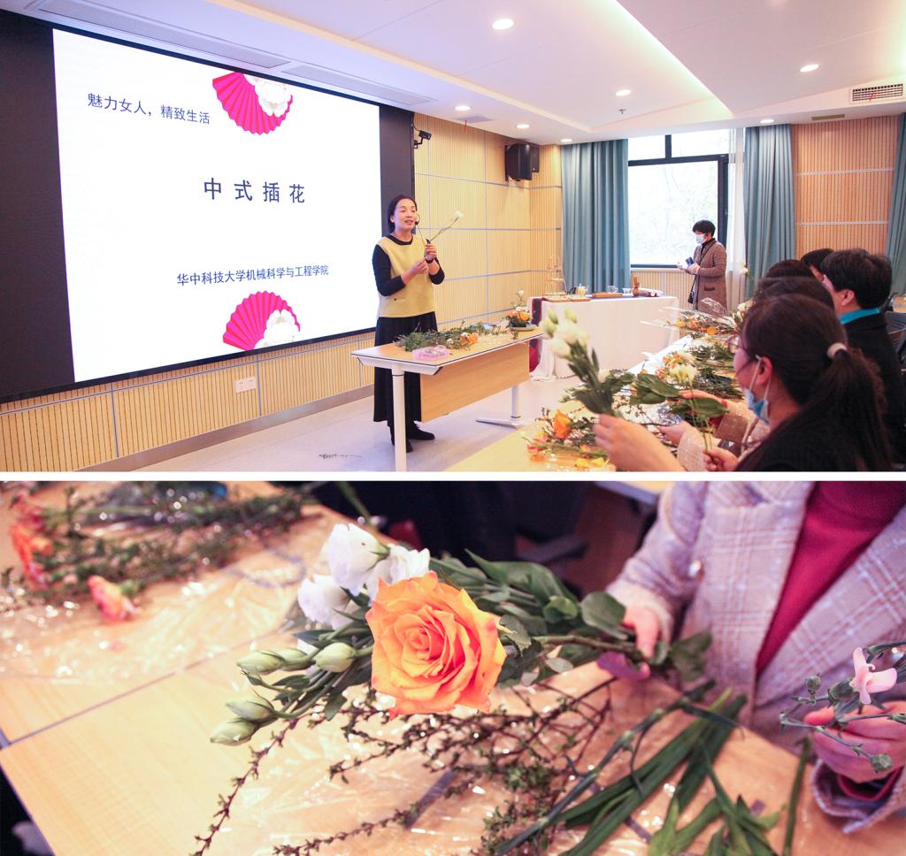 阳春三月,花香四溢,为进一步丰富英国365公司官网女教职工的文化生活,提升审美修养,3月31日下午,英国365公司官网工会在机械大楼东楼304教室举办了“中式”插花活动,吸引了40余位女教职工前来参加。