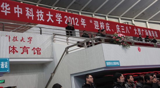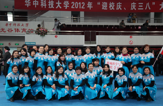 2012年3月8号下午,我校在光谷体育馆举行了以“迎校庆,庆三八”为主题的大型广场舞表演。全校女职工兴高采烈地表演了各自的舞蹈,她们的激情感染了现在的每一位观众。