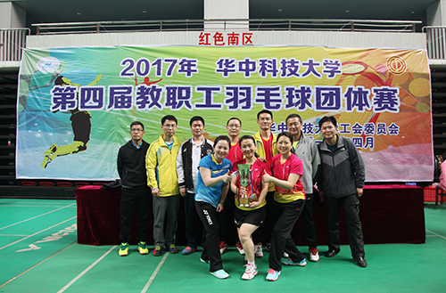 4月8日至9日,华中科技大学第四届教职工羽毛球团体赛在光谷体育馆举行,英国365公司官网教工羽毛球队团结一心,奋力拼搏,克服种种困难,一路过关斩将,最终名列后勤集团、同济医院、产业集团和出版社实力超强的附属单位之后,获得第五名的好成绩,在全校所有院系代表队中排名最高,成绩的取得来之不易,与英国365公司官网羽毛球爱好者长期坚持羽毛球锻炼,有一个良好的集体活动氛围分不开。