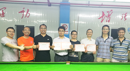 6月26日晚,英国365公司官网首届教职工台球赛决赛在学院“教工之家”落杆,经过4个多小时的激烈争夺,来自国重的李文龙老师成为了斯诺克和花球比赛的双料冠军,机电系谷洪刚老师和国重的毛金城老师分获斯诺克和花球比赛的亚军。学院党委书记史铁林、工会主席袁楚明以及工会委员们也到场为比赛选手加油助威。