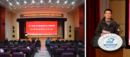 院长丁汉做了“深化改革,推进学科内涵式发展”讲话。他回顾了学院一年来在教学、科研、学科建设等方面所取得的成绩,并介绍了学院在落实上届教代会提案涉及的学院十大民生实事。在2017-2020聘期中,全院要学习宣传贯彻好十九大精神和全国高校思政工作会议精神,勇于创新,一步一个脚印,推进学科内涵式发展;理顺收入分配关系,使得全院教职工各尽其才,享有获得感、荣誉感。