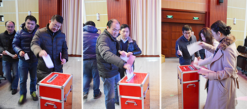 代表们针对综合改革方案投票。投票表决结果:本次大会共发出选票77张,收回有效选票77张,其中赞成票71张,反对票3张,弃权票3张,会议顺利通过了机械学院2017-2020综合改革分配方案。