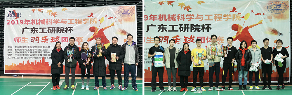 12月18日晚,2019年机械科学与工程学院“广东工研院杯”师生羽毛球团体赛在光谷体育馆圆满落幕。本次比赛由学院工会主办、学院研究生会学生会承办、学院羽毛球队协办,广东华中科技大学工业技术研究院提供奖品支持。