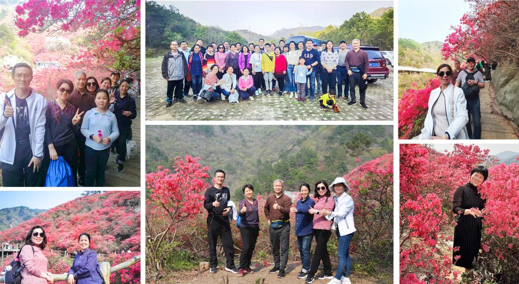 进入景区后,大家或三五成群结对拍照欣赏,或一家老小享受天伦之乐。花美景美人更美,大家纷纷拍摄纪录并分享美景。在诗人的眼中,杜鹃花堪比美人,唐朝诗人施肩吾有诗:杜鹃花时夭艳然,所恨帝城人不识。丁宁莫遣春风吹,留与佳人比颜色。部分教职工在旅程结束后立即用手机制作了赏花小视频,赢得大家的喝彩。