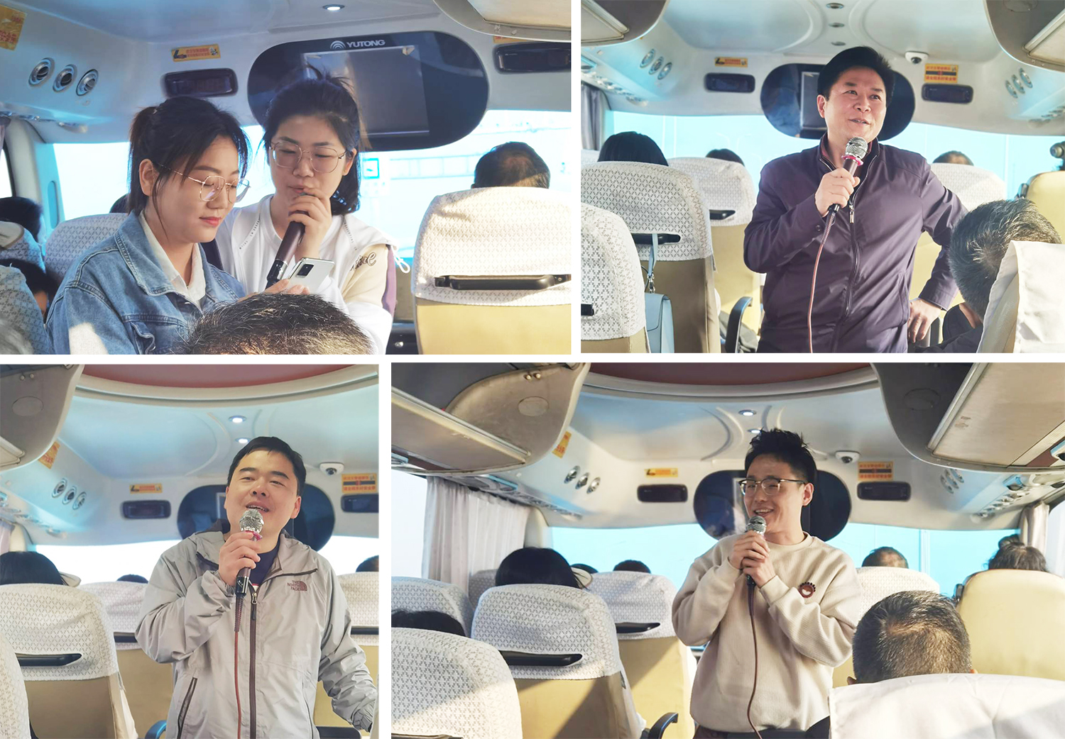 早上7时,大巴从学校启程。由于时值清明,遇上周末出行,路途交通更是拥堵,需花费4个多小时才能抵达景区。但在导游的组织和带领下,教职工们放松心情,在家人的陪伴下,竞相展示才艺,客串主持人、唱歌、朗诵、讲故事……一路激情高昂、兴高采烈。