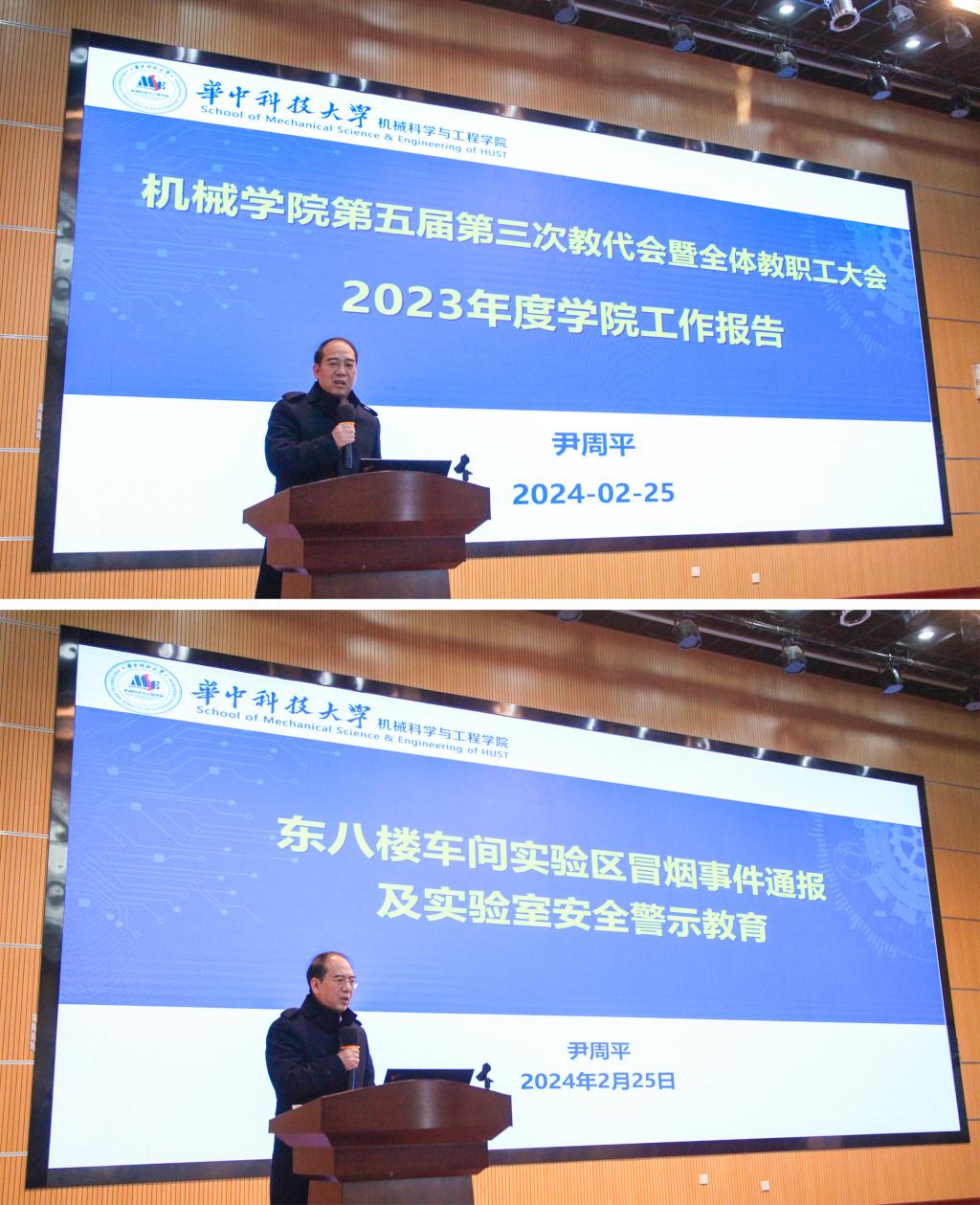 英国365公司官网院长尹周平作学院工作报告和学院实验室安全工作报告。他在学院工作报告中对2023年工作进行了回顾,从“着力加强党的领导,推进学科持续发展”等9个方面总结了学院一年来取得的主要成就,并安排部署了2024年学院8项重点工作。在实验室安全工作报告中,尹周平强调安全是底线,也是红线。