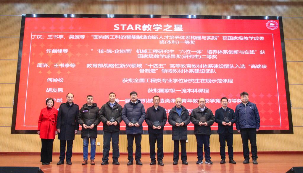 表彰周济院士、丁汉院士,以及王书亭、吴波、许剑锋、何岭松、胡友民、詹小斌、卢文龙、陈冰等教师为“STAR教学之星”。