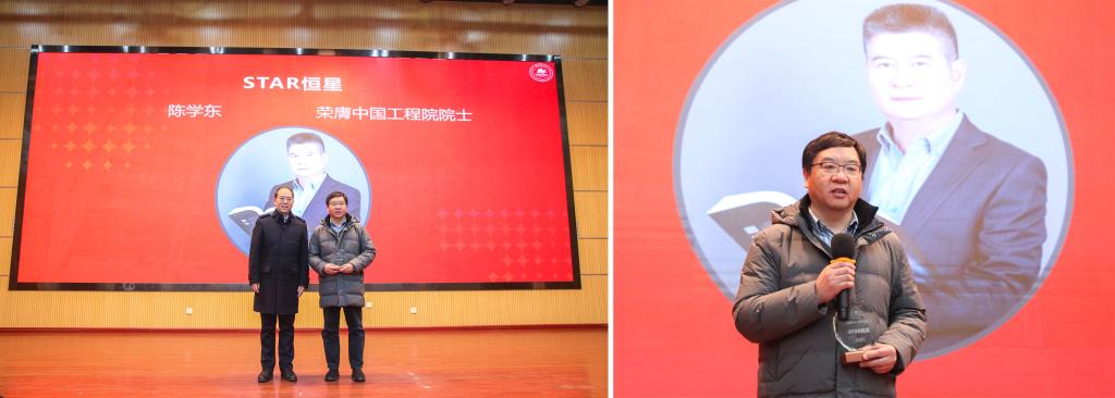 2023年,陈学东教授荣膺中国工程院院士,英国365公司官网授予“STAR恒星”称号。陈学东院士团队罗欣教授上台代为领奖并做发言。院长尹周平颁授奖杯。