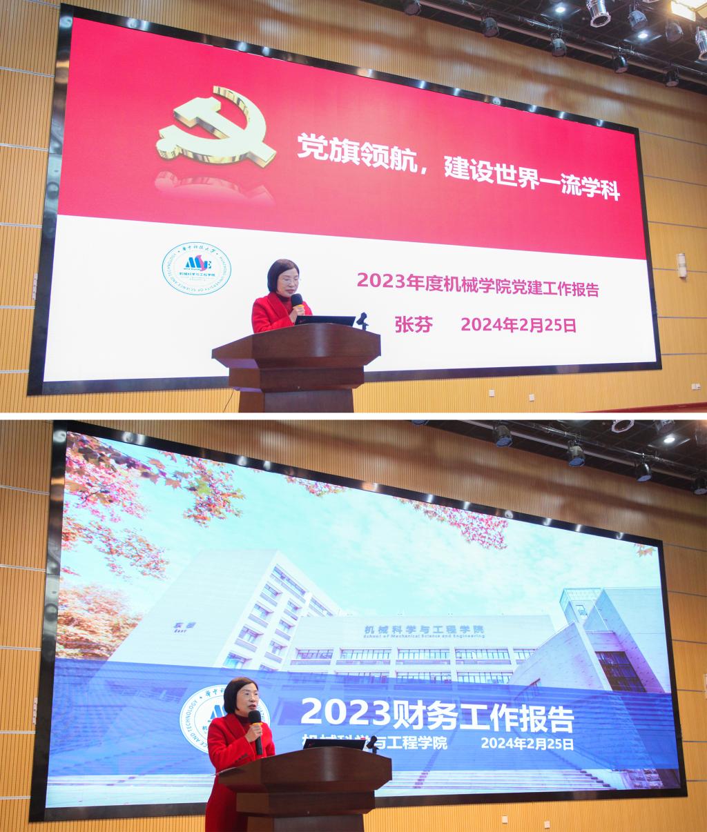 随后,英国365公司官网党委书记张芬作学院党建工作报告和学院财务工作报告。党建工作报告以“党旗领航,建设世界一流学科”为题,并从“突出政治功能、完善党委运行机制”“发挥两个作用,落实基层组织制度”等4个方面阐述了学院在党建工作方面的主要做法及成绩,就当前存在的不足做了下一步工作展望。学院财务报告对2023年的财务各项工作进行梳理和总结,并就财经纪律对全体教职工进行了专题宣讲培训和案例警示。