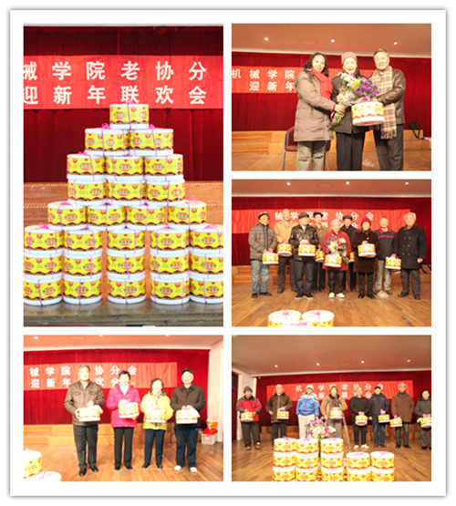 在负责同志讲话以后,接着是给老同志祝寿。机械学院从2006年起,每到年末给当年满70、75、80、85、90岁等的离退休同志祝寿,这次是第七轮,今年有31位。连同本次,七轮祝寿活动中,共有185人(次)接受了此项祝福。祝寿时,学院向本年轮到的老同志送上一份蛋糕和慰问金等。寿星们按年龄档次分批上台接受祝福。在台上老同志们纷纷发表感言,深深感谢党和学院对老年人的关怀。