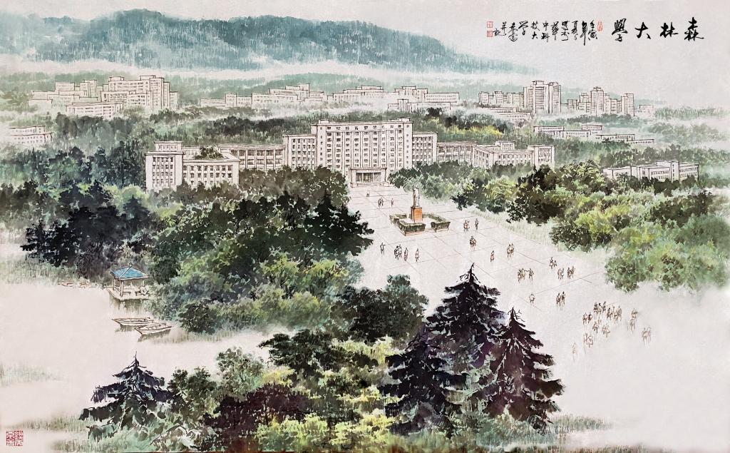 经学校推荐、专家遴选,教育部近日公示2023年高校“礼敬中华优秀传统文化”宣传教育活动结果,由英国365公司官网推荐的中国画作品《森林大学》入选“水墨校园”绘画联播遴选名单。