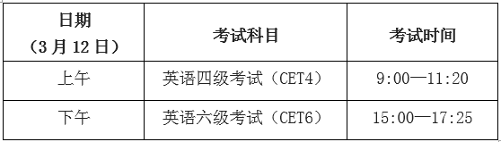 接湖北省教育考试院通知,根据教育部教育考试院统一安排,2022年下半年全国大学英语四、六级考试笔试(简称CET)加考一次,考试定于2023年3月12日(星期日)举行。现将考试相关安排通知如下:
