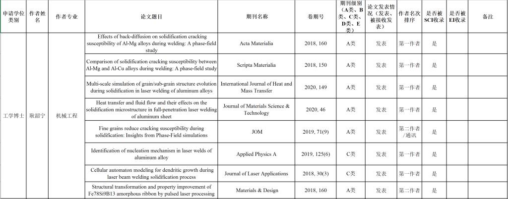 机械学院2020年5月申请博士学位攻博发表论文公示
