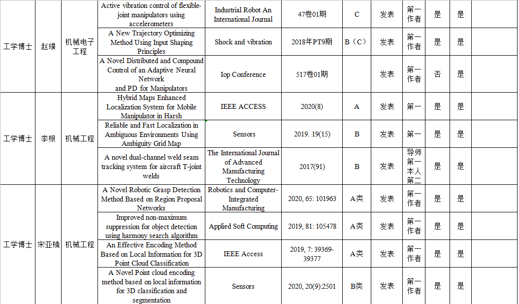 2020年6月机械学院申请博士学位人员在学期间公开发表学术论文信息公示