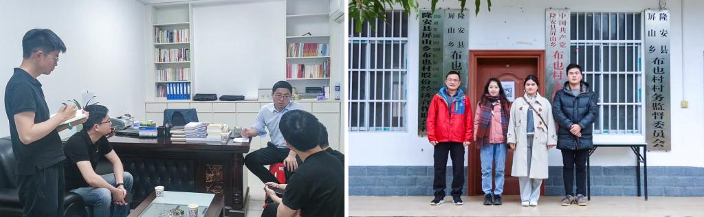 与接官乡党委书记、2018级博士校友叶梦力进行深入交流(右二),赴广西南宁走访2016级本科校友、2020级硕士校友阳香铭(右一)