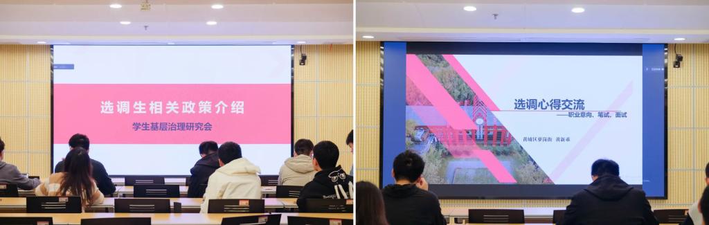 开展“把论文写在祖国大地上”——机械学院选调生就业分享会、优秀应届毕业生刘腾分享选调备考经验、优秀选调生校友返校交流