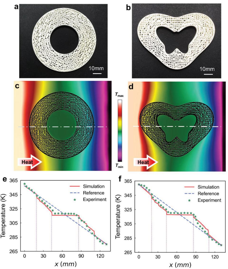 图4. 3D打印制备的热学超器件及热学实验测试结果