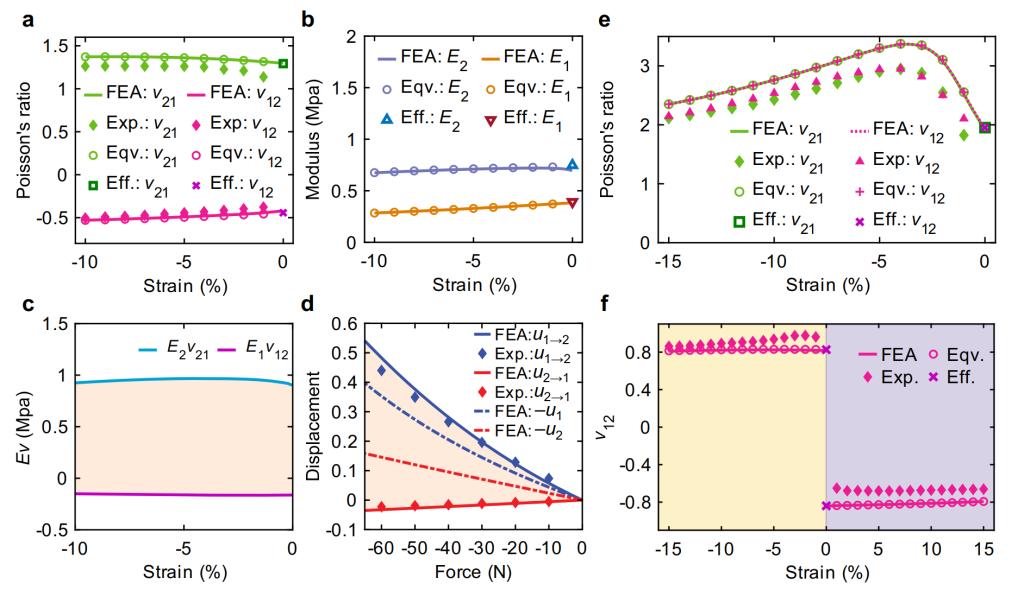 泊松比是描述材料在纵向单轴拉压时,横向正应变与纵向正应变之比的力学属性。自然材料的泊松比一般为正值,而人工设计的力学超材料能够表现出负泊松比。目前,自然材料的正泊松比值和力学超材料的负泊松比值仍处于经典的热力学理论极限内,超越该极限可扩大泊松比的取值范围,在医用支架与软体机器人等装备领域具有重要的应用价值。