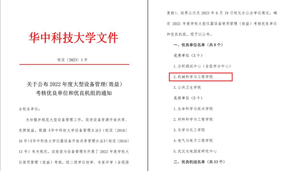 8月24日,我校2022年度大型仪器设备管理(效益)的考核结果正式公布,英国365公司官网获评“优秀单位”,这是英国365公司官网连续三年在该考评中蝉联优秀。同时,有5台套大型仪器设备机组获评“良好机组”。