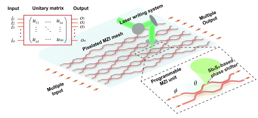 像素化非易失可编程光子芯片示意图
