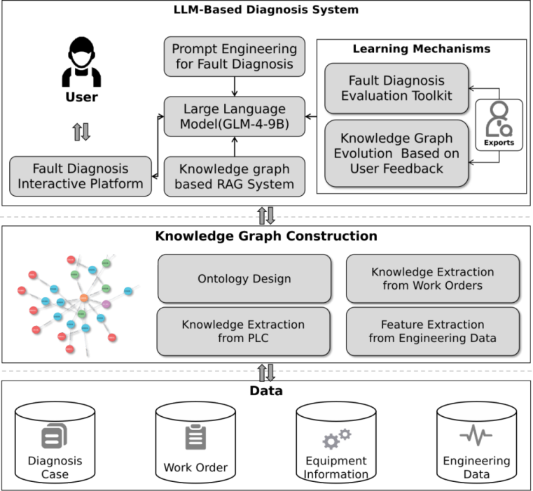 针对上述科学和工程问题,研究团队在研究论文中提出了一种数控系统智能故障诊断研究框架,该框架基于大型语言模型和领域知识图谱等关键技术,突破了传统专家系统基于符号推理的局限,显著提高了故障诊断的效率与准确性,超越了具有两年经验的工程师诊断水平。文中分别提出了基于知识图谱的检索增强(RAG)方法,以及结合大语言模型与专家知识输入的动态学习机制。