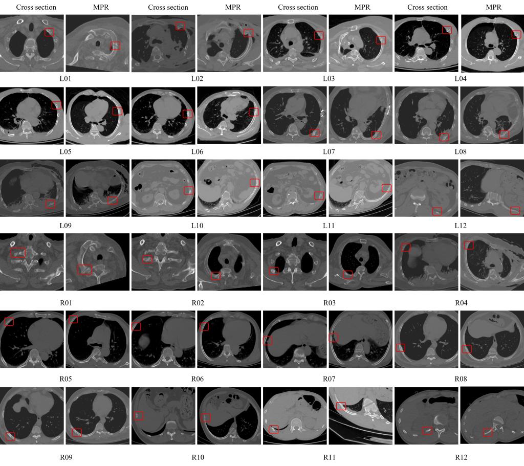 24例骨折肋骨横截面诊断结果与MPR的比较