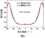 图11(a)直下式LED背光用ASLP;(b)ASLP优化配光曲线;(c)距高比为3时,ASLP在接收平面上的照明效果(均匀度88.7%)