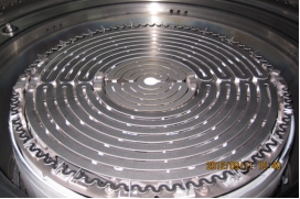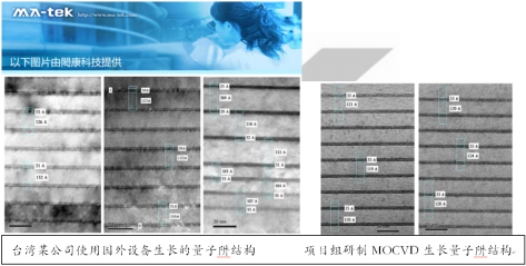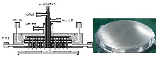 与国外先进设备相比,该设备生长的LED量子阱异质结构层清晰可辨,层间材料界面陡峭(图5),表明设备反应腔内反应源的输运和切换精确可控,反应腔体对工艺温度和反应源重复控制能力很强。测试表明,课题组研制的BDS反应腔在流场和温度场均匀性、重复性和准确性以及系统控制上达到国际先进水平(图6为研制的MOCVD设备核心部件)。
